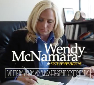 Legislators from three Southwest Indiana districts pose together as they raise awareness for cancer prevention efforts at the Statehouse. (Left to Right: Ronald Bacon, District 75; Wendy McNamara, District 76 and Holli Sullivan, District 78)Fighting Cancer One Tie At A Time